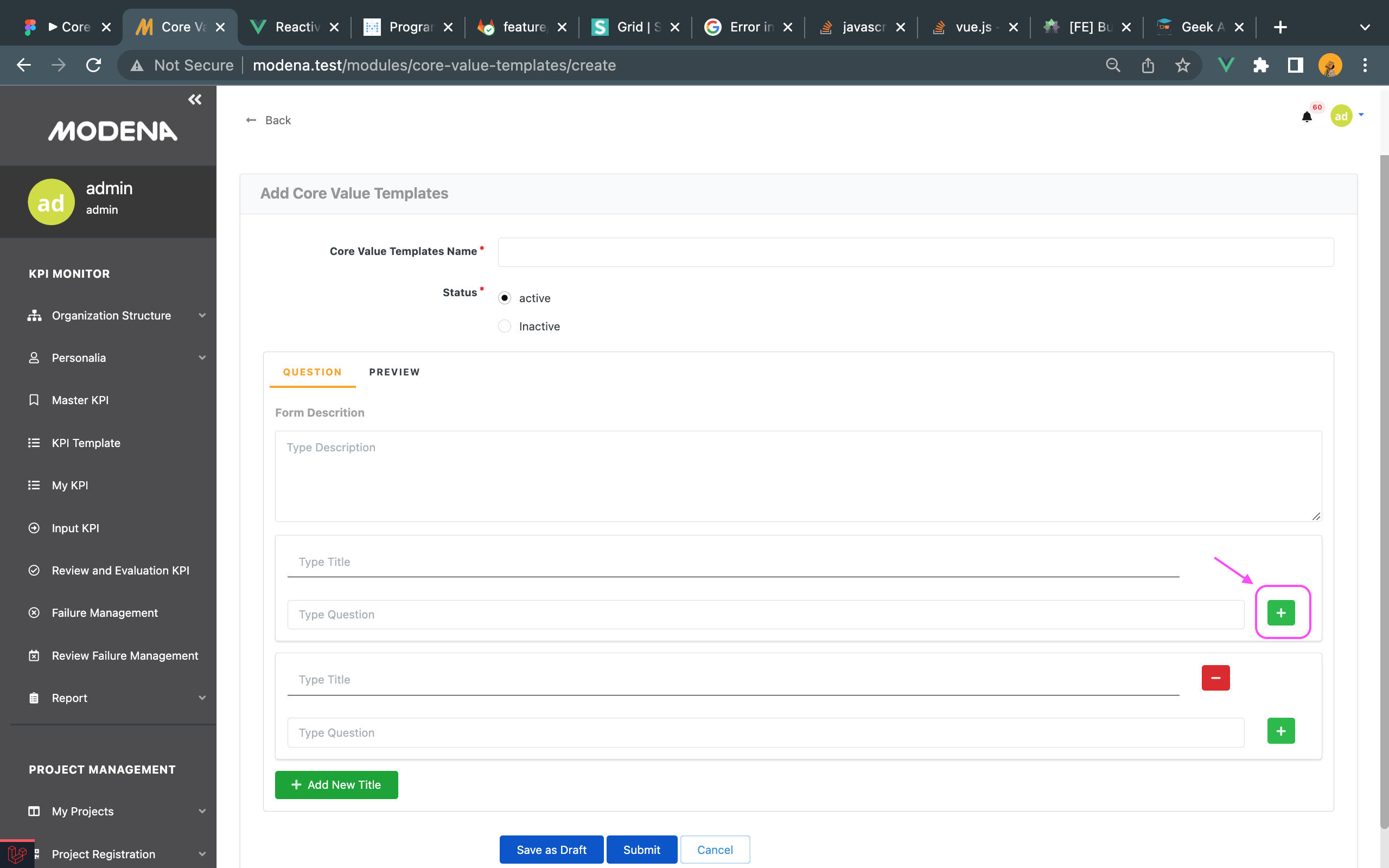 Bagaimana agar field input type question bisa dinamis sesuai dengan index induknya?